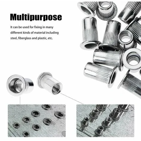- 【Filetage Profond】: Ces écrous à rivets sont moletés avec un filetage profond à l’intérieur, qui sont efficaces pour fixer et antidérapants. L’écrou moleté facilite l’insertion dans la pièce à usiner.