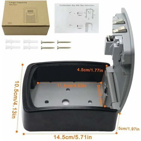 EXTRA LARGE CAPACITY -Grande boîte à clés avec serrure à code a un espace extra large (taille intérieure autour de: 11.5*4.5*8cm) que vous pouvez placer plusieurs clés telles que les clés de la maison, les clés de voiture, la carte de sécurité. Plus de stockage que les conventionnels serrure à clé box. Vous pouvez y mettre vos clés ou vos clés de voiture lorsque vous allez au travail ou en vacances.