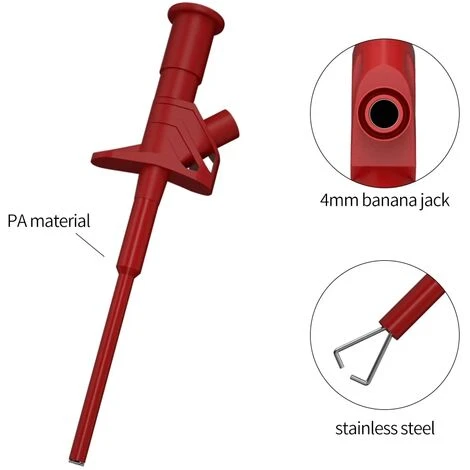 Crochet de test de clip de test rapide professionnel entièrement isolé, appuyez sur le crochet de test, la tête est flexible et pliable, et le côté est une douille banane de 4MM