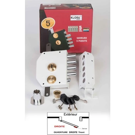 Serrure 5 Points à Tirage » Blindex « 5 Clés A Pompe, Blanche Droite – ( Idem Iseo….) KLOSE BESSER