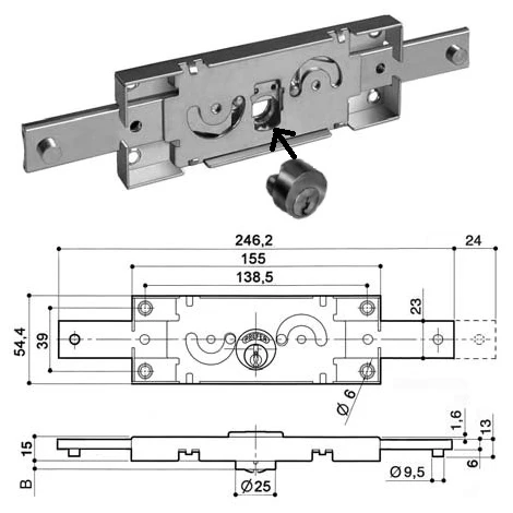 Serrure PREFER variée ou s’entrouvrant pour rideau métallique et porte de garage A211.0012, à pênes droits et cylindre centré.