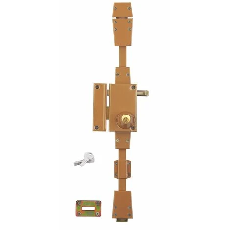 Boîtier en acier cambré ép. 20/10ème. Coffre cambré 75x130mm axe à 45 mm. Jeu de tringles pour une hauteur maximum de porte de 2,25 m. Mécanisme intérieur type équerre permettant la manœuvre du 1/2 tour de l’intérieur comme de l’extérieur avec la clé. Pêne et 1/2 tour en laiton massif. Pênes haut et bas en acier zingué. Gâche avec têtière de haute résistance. Enjoliveur de cylindre côté intérieur. Carré 7mm. Poignée double anodisé champagne fournie pour serrure à fouillot. Le montage de la serrure ne nécessite pas d’entaillage spécifique de la porte.