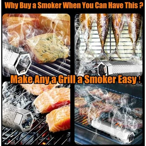 1. Le tube de fumoir à granulés hexagonal spécial, différent du tube de fumoir circulaire traditionnel, peut rester stable et ne roulera pas ou ne tombera pas des grilles. Bouchon ouvrable à une extrémité, facile à remplir et à allumer la pastille, vous pouvez fermer le bouchon ou l’ouvrir pour répondre à votre demande. Le capuchon scellé à l’autre extrémité maintient les granulés à l’intérieur. Et il n’est pas perforé d’un c?té, peut empêcher le pellet de toucher directement le feu des grilles, permet au pellet de br?ler complètement pour fournir un fumeur constant. 2. Ce tube de fumée peut être utilisé avec divers granulés de bois tels que le cerisier, le hickory, le mesquite, la pomme, la noix de pécan pour ajouter différents go?ts. Le fumoir à tube fonctionne également avec des copeaux de bois. Vous pouvez les mélanger ou les empiler dans le tube. Ce tube à fumée est parfait pour fumer à chaud et à froid, ajoutant une merveilleuse saveur de fumage à de nombreux types d’aliments : viandes, fromages, légumes, noix, bacon, poulet, sel, hamburger, steaks, porc, hot-dogs, saucisses, fruits, ma?s, et plus! 3. Le générateur de tube à fumer à granulés chauds est livré avec des articles bonus : design spécial pour nettoyer efficacement le tube à fumer et 2 crochets en S pour accrocher vos tubes de fumage ou vos outils de barbecue, pratique pour ranger vos outils de gril. Tous sont alors bien emballés dans une bo?te. 4. Sa nouvelle forme hexagonale permet une diffusion efficace de la fumée, par conséquent, elle vous donnera le meilleur résultat de fumage. Contrairement aux fumeurs circulaires traditionnels qui peuvent rouler, cette forme hexagonale reste en place pour fournir un fumage équilibré. 5. Petit et léger, vous pouvez les utiliser à l’intérieur et à l’extérieur, cet ensemble de tubes de fumeur portable peut également être un excellent cadeau pour papa, homme amateur de barbecue, gril ou ma?tre de gril.
