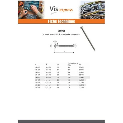 UGS : BWFUB 3663072244450 Catégories : Clou, Clou à tête demi-ronde Étiquette : Clou à tête demi-ronde