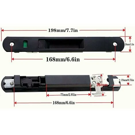 Taille : longueur de verrouillage 198 mm, distance de trou : 168 mm.