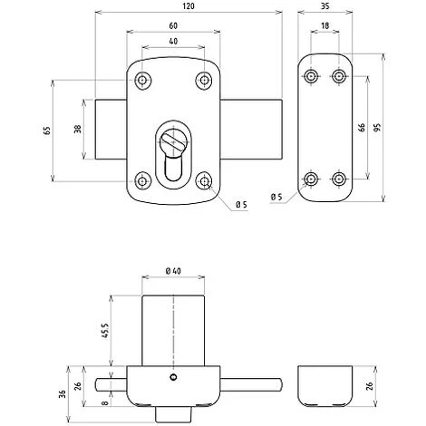 Verrou avec protecteur et contre plaque pour cylindre 30 x 50 mm, pour porte d’épaisseur 40 mm, Verrou avec protecteur et contre plaque